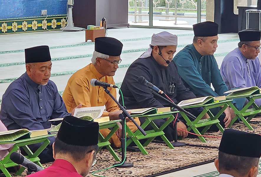 Majlis Tadarus dimulakan dengan bacaan Surah Al-Fatihah dan disusuli dengan tadarus Al-Qur'an bermula dari juzuk 1 yang dimulakan oleh ketua rombongan majlis. Majlis turut diberkati dengan bacaan Tahlil Arwah dan Doa Selamat. Majlis kemudian disudahi dengan berbuka puasa serta Solat Fardhu Maghrib secara berjemaah.