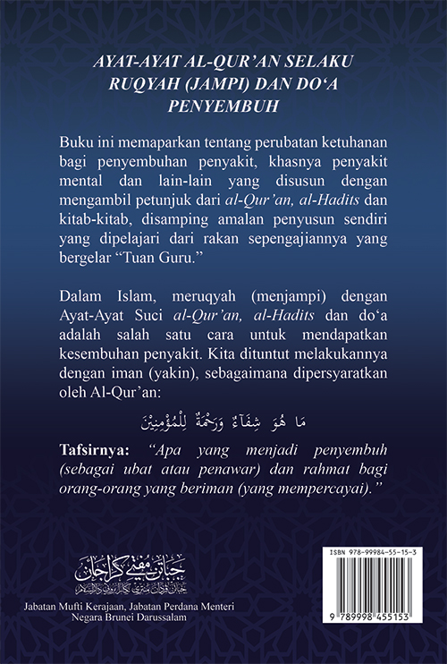 Buku ini memaparkan tentang perubatan ketuhanan bagi penyembuhan penyakit, khasnya penyakit mental dan lain-lain yang disusun dengan mengambil petunjuk dari al-Qur'an, al-Hadits dan kitab-kitab, disamping amalan penyusun sendiri yang dipelajari dari rakan sepengajiannya yang bergelar "Tuan Guru."